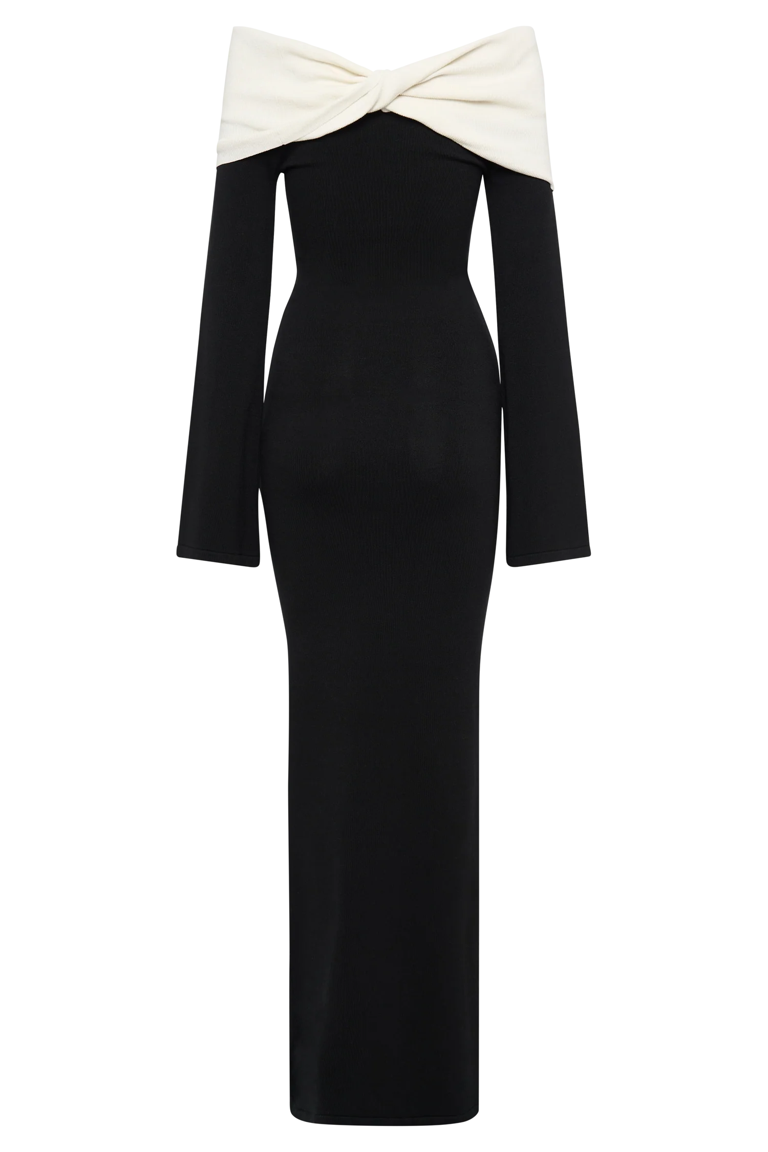 The YOKO Contrast Knit Maxi Dress is a stunning blend of style and sophistication. Featuring an off-shoulder neckline and a foldover ruched front, this dress elegantly accentuates your silhouette while adding a touch of texture and visual interest. The maxi length creates a graceful and elongated look, making it perfect for both formal events and chic casual outings. This dress is designed to make a statement with its contrast knit and timeless appeal.